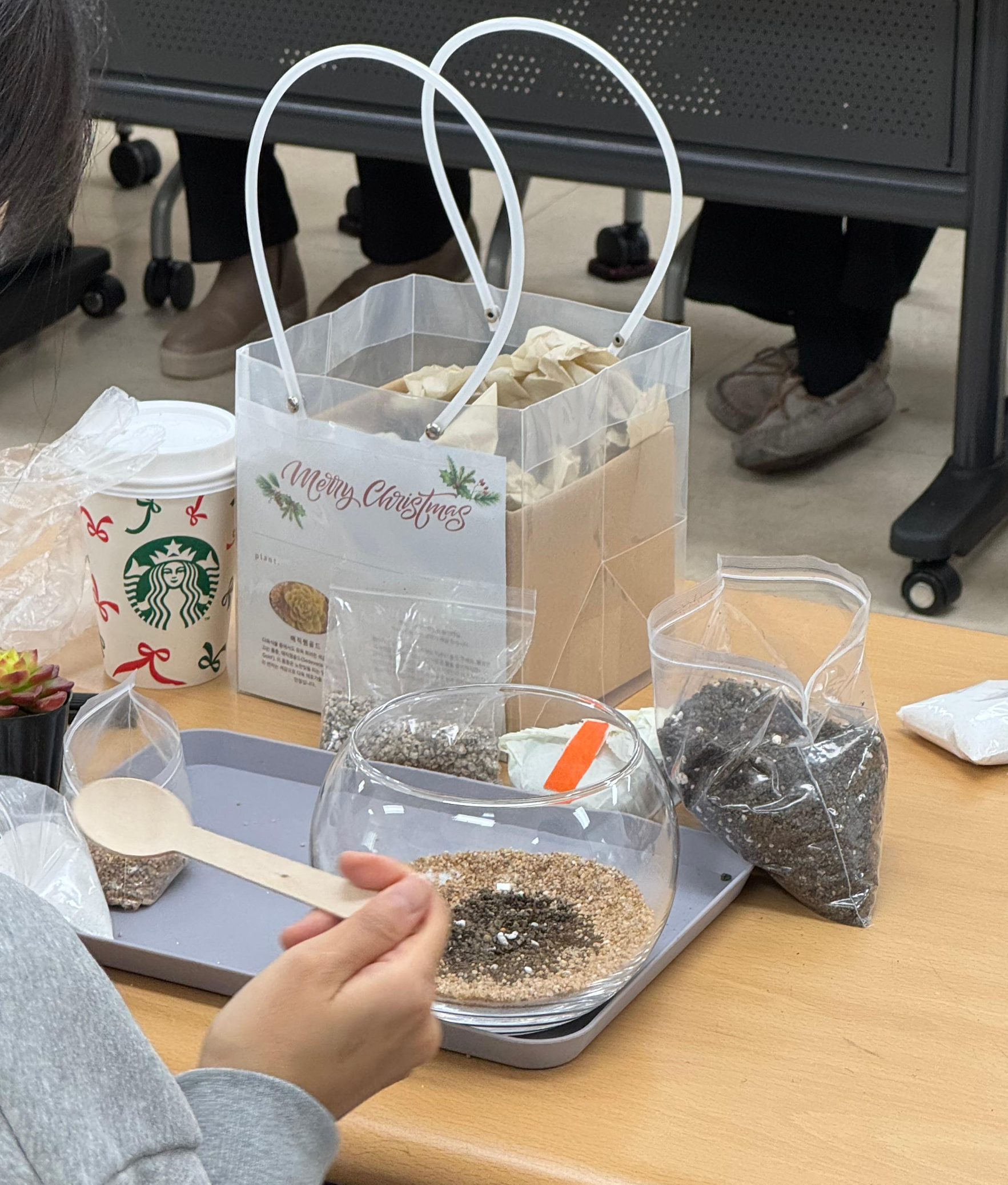 이번 연말 수업은 크리스마스 테마로 만들어진 테라리움을