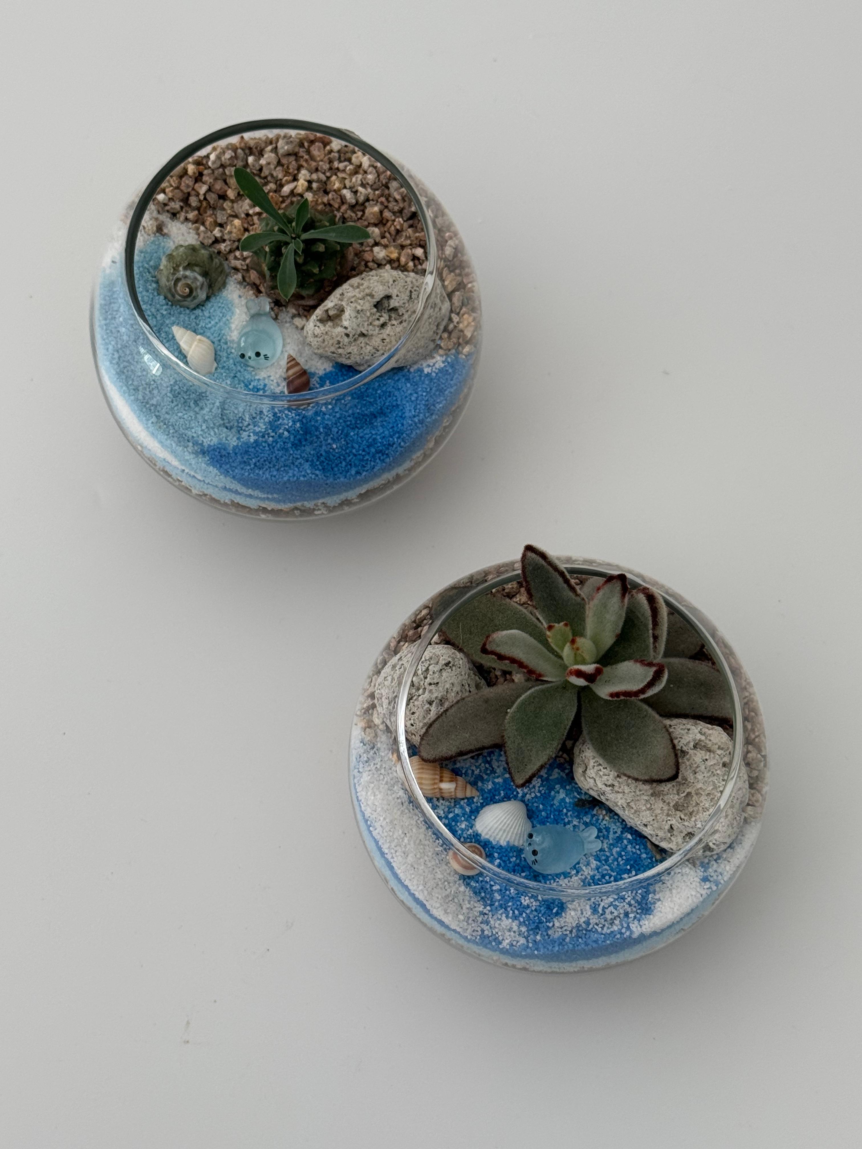미니 유리볼에 건조에 강한 다육식물을 심고